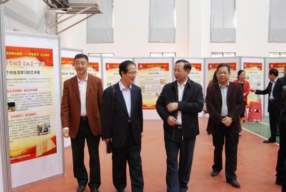 ── 武汉市隆重举办2013年全民终身学习活动周开幕式 洪山区区委书记刘涛首先致辞。他说:近年来,洪山区委、区政府充分发挥科教人文和生态环境优势,以创新驱动、转型发展为核心,着力打造“文化五城”;以创建全国社区教育示范区为目标,加强一体化组织建设,逐步形成了政府主导与社会各方参与相结合、终身教育体系与国民教育体系相结合、学习型社会建设与文明城市创建相结合的立体教育模式,全民终身学习活动蓬勃开展,为全面建成小康社会奠定了坚实的基础。 中国成人教育协会常务副会长张昭文发表了热情洋溢的讲话,高度评价了武汉经济社会发展和全民终身学习活动、学习型城市建设取得的成就。 中共武汉市委副书记胡曙光作了重要讲话。他说:党的十八大提出的“积极发展继续教育,完善终身教育体系,建设学习型社会”,是我国新时期经济和社会发展重要的战略任务之一,是“中国梦”的重要组成部分。近年来,在全市上下共同努力下, 我市全力推进学习型组织建设、搭建平台调整布局、大力开展实验区项目建设、打造“武汉终身学习网” 共享资源、横向沟通协同配合,展示学习型城市建设成果,我市学习型城市的建设取得了长足发展。 武汉市第十二次党代会提出了建设国家中心城市的发展目标,武汉再次迎来跨越式发展的重要战略机遇。建设学习型社会,构建全民终身学习体系,各级政府和有关部门要在巩固现有建设成果的基础上,形成高度共识、强大合力,以进一步推进我市学习型城市建设。 开幕式上,表彰了荣获“全国百姓学习之星”和“武汉市百姓学习之星”的24位代表,并现场采访了年逾八旬的“全国百姓学习之星”李愉明和身残志坚的“武汉市百姓学习之星” 明廷雄,他们执着的学习精神、感人至深的学习事迹赢得了与会者的阵阵掌声。洪山区2013年荣获第五批全国社区教育实验区,中国成人教育协会常务副会长、秘书长张昭文为洪山区授牌。 为加快洪山区学习型社会建设步伐,洪山区充分利用辖区高校云集、资源丰富的区位优势,努力将高校优质人才信息教育资源引入社区促进社区发展;同时社区为高校大学生开辟社会实践活动平台,优化、美化、净化高校周边环境,为辖区高校师生提供良好的学习、生活、成才环境,互利互惠、多方共赢。洪山区高校与社区联盟为我市社区教育发展开辟了新途径、为构建终身教育体系提供了新内容、为推进学习型社区建设赋予了新活力。 开幕式当天,七一二社区广场洋溢着节日的欢乐气氛。洪山区各街道、社区组织开展的全民终身学习特色项目展示吸引了大批市民驻足观看。在书法、剪纸、编织、工艺制作、葡萄酒酿制、魔术、锯琴表演等各展台前,社区居民兴致勃勃地与工作人员交流,市民成为参与的主体。 “全民终身学习活动周”,已经成为武汉市建设学习型城市的重要文化标识,成为宣传终身教育理念、推进终身教育体系建设具有广泛社会影响的品牌活动。