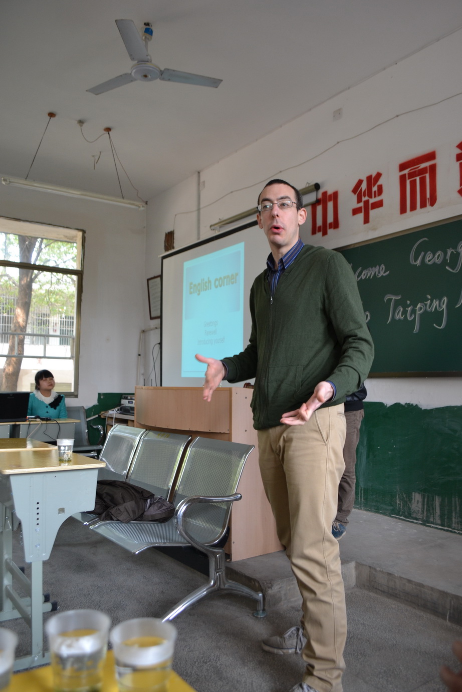 3月21日下午2点,坪塘街道社区学校为太平中学请来了一位特殊的朋友,他是岳麓区社区教育志愿者协会团体单位——湖南大学GR外语国际交流部的外教志愿者—George老师。