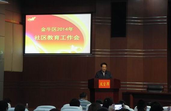 区教育局党工委书记、局长文贤代作了社区教育工作专题汇报,总结了2013年全区社区教育工作所取得的成效。成都市广播电视大学(成都社区大学)党委书记、成都市成人教育协会会长赵刚对金牛区社区教育工作取得的成绩给予了高度评价。区委常委、宣传部部长王凤鸣作了题为《认真落实“一规划,两方案”,努力建设和谐文明新金牛》的专题报告,对金牛区当前和今后一段时期的社区教育工作提出了具体要求。