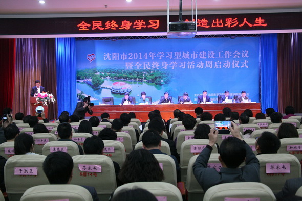 市委常委、市委宣传部长王凤波主持会议,大东区区委书记王健致辞;市政府副市长姜军作沈阳市学习型城市建设工作报告;市委副书记邢凯宣布:“2014年沈阳市全民终身学习活动周开幕”。会后,与会人员参观了沈阳市社区居民摄影、书法、绘画、剪纸作品展和大东区终身学习活动周成果展。