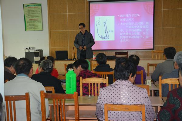 朱医生简单讲解了什么是经络穴位后,首先告诉村民需经常按摩的足三里、合谷、内关、涌泉、肾俞等5个重要穴位的认穴方法和按摩方法,接着讲了保养眼睛耳朵、增强脑力、消除疲劳、安心养神、预防感冒的穴位及按摩手法,最后还介绍了简单易学、可居家常做的按摩养生法。