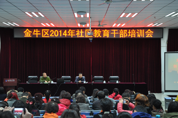 12月4日上午,2014年金牛社区教育干部培训会在锦西中学顺利召开。成都市教育科学院研究员钟锂、来自区内15个街道的分管领导和社区教育工作站站长及教育干事、社区教育学院各科室人员近150人参加了培训,会议由金牛社区教育学院院长杨学富主持。