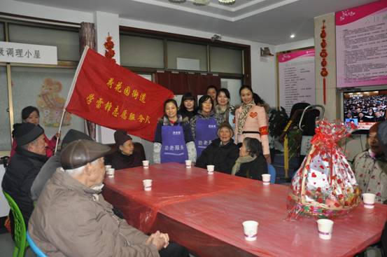 街道党团员志愿者慰问万众和居家养老康护中心的老人