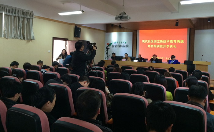 3月25日上午,由长沙广播电视大学(长沙社区大学)主办,湖南农业大学园艺园林学院承办的“现代园艺社区新技术教育师资培训班”开班典礼于在湖南农业大学园艺园林学院隆重举行。出席开班典礼的领导有长沙电大党委书记胡党生、校长常立新、副校长魏建明、纪委书记林涛及园艺园林学院院长杨国顺、副院长甘德欣、副院长何长征。长沙社区大学全体在职教师、长沙10所示范性社区学校和6个优秀社区学习中心建设单位专干共60余人作为学员参加会议。