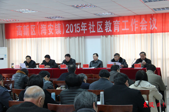 会议首先是高新区社事局副局长丁永龙宣读了海安高新区管委会2015年41号文件《关于表彰2014年度社区教育工作先进个人的决定》并颁奖。接着由社区教育中心负责人王吉余做高新区(海安镇)2015年社区教育工作报告,报告对2014年高新区社区教育工作做了回顾,布置了2015年高新区社区教育工作,并以海安高新区管委会2015年40号文件下发到各街道、村(居)。今年的具体工作目标是完善社区教育机构、推进社区教育现代化、巩固社区教育品牌、加强常规教育培训、强化师资继续教育、围绕中心服务大局;主要措施从营造社区教育氛围、规范社区教育管理、提高社区教育成效、创新社区教育服务四个方面进行了细化。