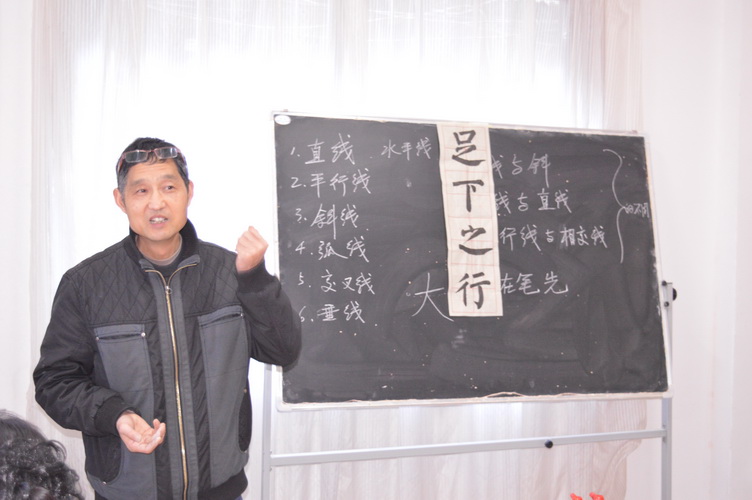 3月27日星期五下午3:00,万事俱备,我们迎来了岳麓区社区教育志愿者协会书法老师陈亚清,他从事少儿、成人硬笔字和毛笔字培训多年,有丰富的教学经验。他从毛笔的正确握法以及简单的直线、平行线、斜线、弧线、交叉线和垂线等笔划的基础写法教起,耐心、细致地手把手教授居民,引领他们一步步踏入书法艺术的殿堂。通过两个小时的学习,居民们学会了毛笔书法的基础知识和写法,老师对学员们作出了要求,一是回去多练,二是每次交一幅作品。