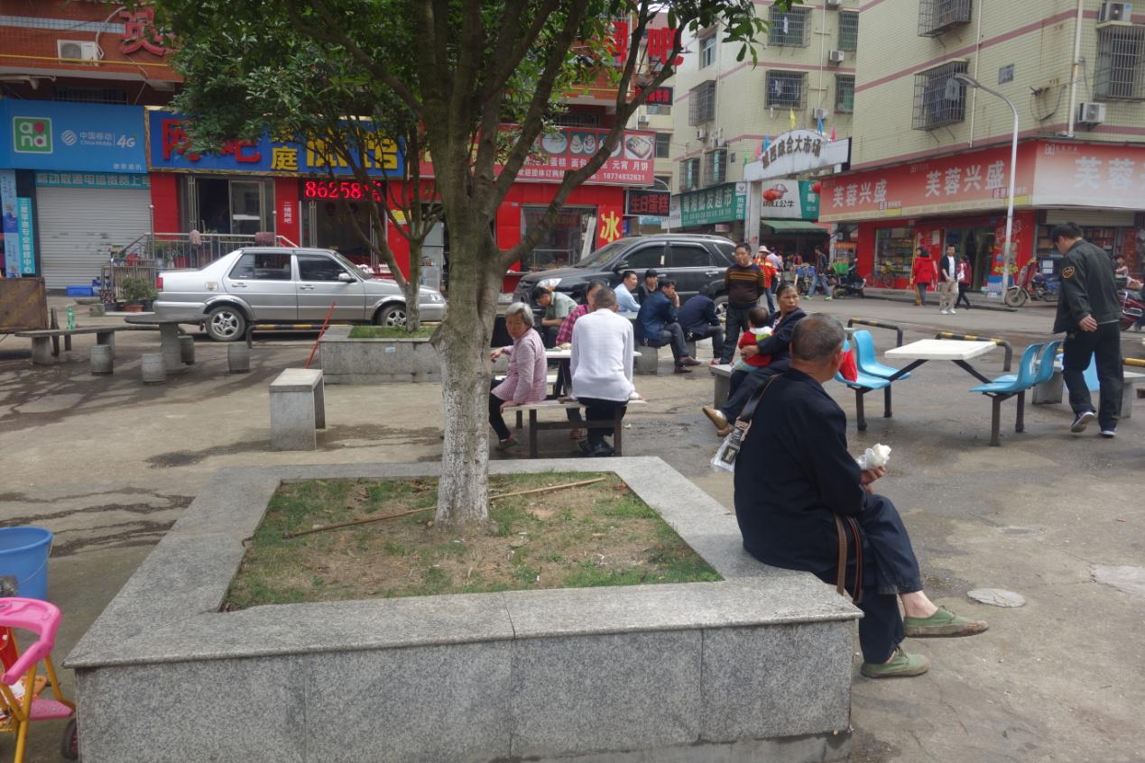 清洗后路过的居民在广场上休息