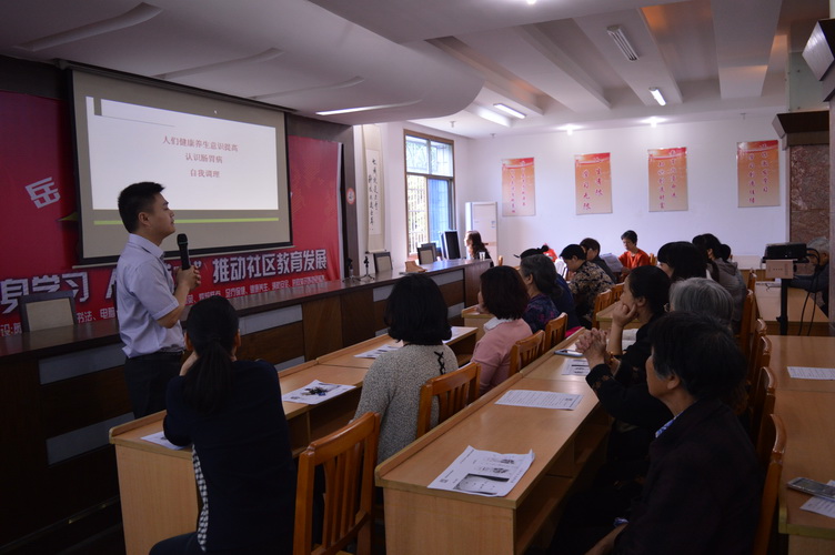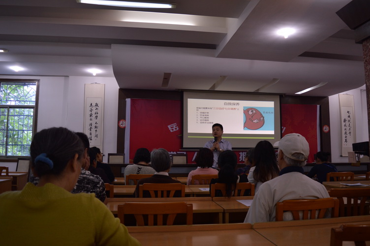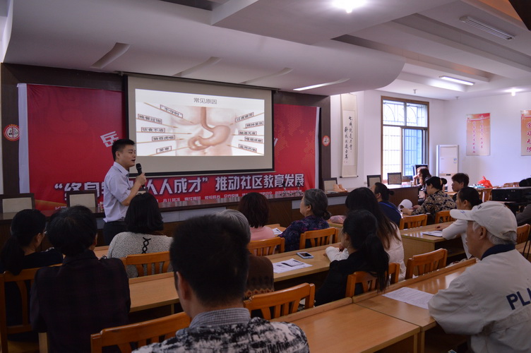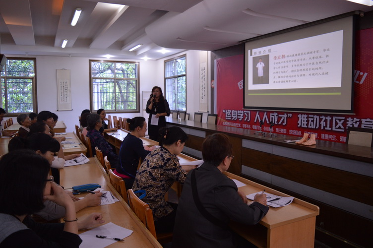 5月15日下午2:30,岳龙社区学习中心在岳麓区社区教育志愿者协会的鼎力支持下,贴别邀请了湖南颐而康职业技术学校的邓老师为社区居民讲授中医足疗肠胃保健知识。