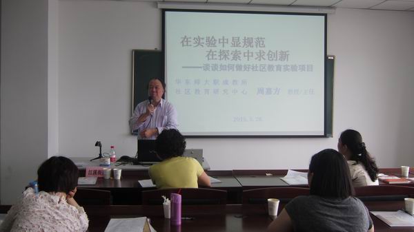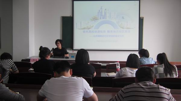 无锡科技职业学院院长黄海燕和新区教育局范忠良局长分别为培训者作了《如何利用科技学院教育资源开展居民社区教育活动》和《新区社区教育创新工作思考》等报告。培训班还就社区教育中心、社区居民学校的建设标准作了解读。