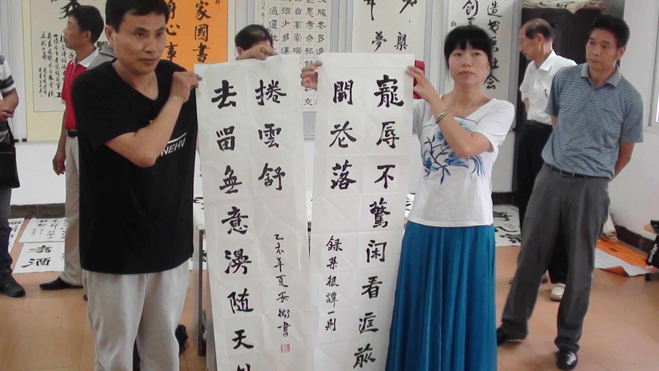 6月3日,应长沙县榔梨街道社区学校的邀请,来自省、市、县的书法家协会的部分会员及爱好者与榔梨街道社区学校书法班学员们欢聚一堂,互相交流学习书法的心得。