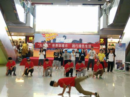 在高桥大市场现代商贸城里,30名学生正在欢快地跳着街舞,吸引了不少购物的市民驻足观看,现场顿时沸腾起来。市民余先生表示,孩子们跳的真好,用这样的方式来宣传环保法是一个新鲜的玩法,也很吸引眼球,比普通的展台宣传更有效果。第一场活动结束后,“快闪”组们迅速赶往金环社区万家丽路旁麦当劳前坪和永定社区夜市美食街开展第二、三场快闪活动。活动最后,所有表演人员、志愿者、周边群众均在宣传横幅上签名,倡导绿色出行,践行绿色生活。