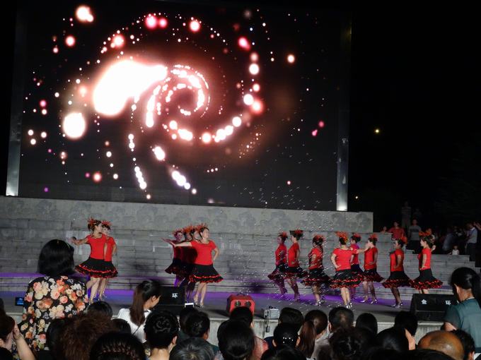 荷花园社区队来了。艳丽的服装,姣好的身材,热歌劲舞,让人眼亮;