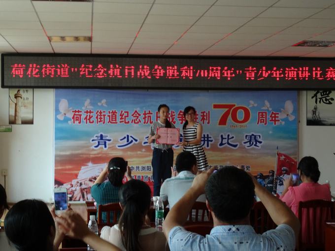 [浏阳市]精神传承 社区教育应有之义 —浏阳市荷花街道社区学校参与组织“纪念抗日战 争胜利70周年”青少年演讲赛