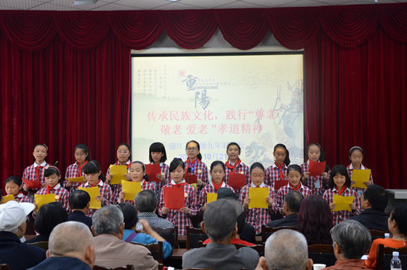 鹤山街道社区教育学校蒲实分校通过“编写重阳节节日小报”、 开展“国旗下演讲”、制作手工贺卡候为老人送祝福、“感恩老人细节行动(一个电话、一杯热茶、一次聊天”)等多形式活动,营造了浓厚的爱老、敬老、孝老氛围。