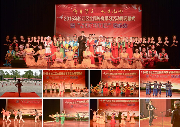 2015年,松江区根据终身教育转型发展实际,以提高终身教育服务能力为目标,加强终身教育资源建设,开展终身教育模式的创新实践,推动终身教育与职业教育、社区文化、社区治理的融合,使全民学习之风吹遍茸城。全区不断推出终身教育创新举措,实施中华家文化、中华茶文化社区教育普及项目,建立科普教育示范基地,开展“百师百课”活动,实现文教融合,开展“养教结合”活动,探索微课堂学习模式;全面推进成人学校标准化建设,三年来,政府共投入近3000万元,加强成人学校建设,全面提高各校的教育服务能力;加强社区教育品牌建设,区社区学院“传播者讲师团”、泗泾镇“小手牵大手孝德心连心”工程、永丰街道“透过堂号看家风”活动、九亭镇“我爱我家”微课程、中山街道“暖阳”行动等显示勃勃生机;近千支学习团队争奇斗艳,为社区教育涂抹亮色;涌现出一批终身学习积极分子,张用诚被评为百名“全国百姓学习之星“之一;全民终身学习的氛围日益浓郁,在2015年全民终身学习周期间,全区15万市民先后参加了600多项不同层级的学习活动,掀起了全民终身学习的新高潮。