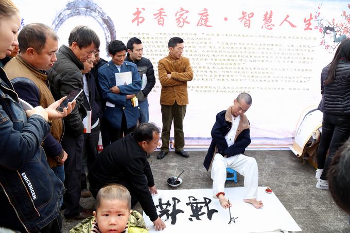 活动现场,金刚社区居区杨忠计身残志坚、苦练书法,并为现场所有观众展示用脚书写作品-《拼搏》,用实际行动向命运拼搏,带来了满满正能量。