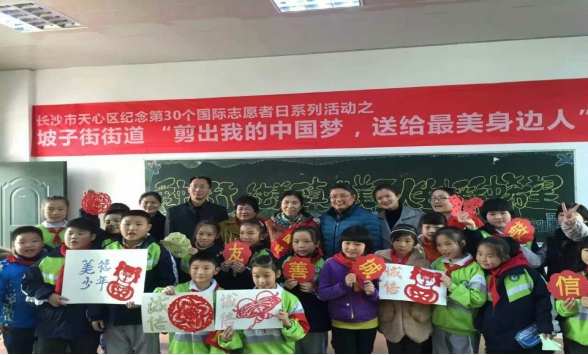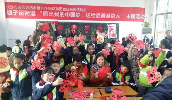 据悉,本次活动由长沙市文明办、天心区文明委主办,天心区文明办、天心区教育局、天心区坡子街街道社区学校、铜铺街小学承办。在第30个国际志愿者日来临之际,以感恩节为契机,创新形式褒奖鼓励辖区最美少年和志愿服务先进典型,以天心区“2015年终身学习精品课程进社区”推送的剪纸教学和作品送给最美身边人把爱和善的种子种在孩子心中,把核心价值观落细落实到每个居民行动中。