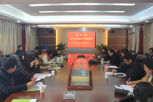 本次推进会共有三项议程,一是各街道分管书记交流回顾2015年、展望2016年社区教育工作;二是戴局长总结2015年全区社区教育工作;三是区社区教育办公室王信芳副主任布置2016年社区教育工作。