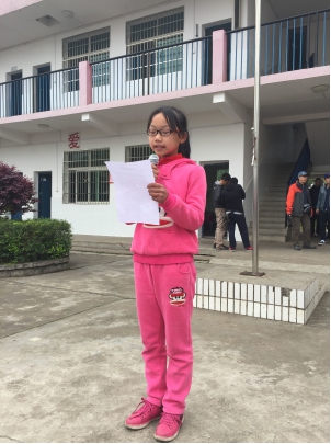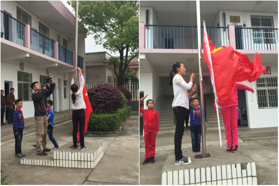 上午九点,摄制组来到学校,学生们着装整洁、精神饱满,站立在操场中央,等待升旗仪式的开始。随着主持人吴梓昕的口令,升旗仪式正式开始。旗手文亚婕带领护旗手们从操场一旁踏步走向升旗台。随着《中华人民共和国国歌》的响起,五星红旗在全校师生的注目中冉冉升起,升国旗仪式完毕。黄子格同学进行了“缅怀革命先烈,感受幸福生活”的主题演讲,代表田汉小学全体学生宣誓,奋发向上,以优异的成绩告慰青松下长眠的烈士!