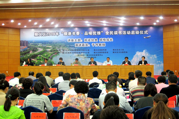 活动中,向与会人员印发了《顺义区2016年学习型社会工作意见》和《顺义区2016年“绿港书香”全民读书活动实施方案》。区社区教育中心主任李建军部署了2016年顺义区绿港书香全民读书活动,区文明办主任田庆江宣读了顺义区绿港书香全民读书活动倡议书,北京师范大学教授、博士生导师于丹教授作题为“阅读经典,感悟成长”的报告。
