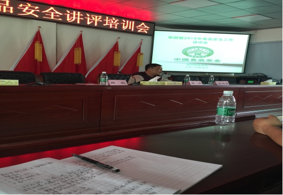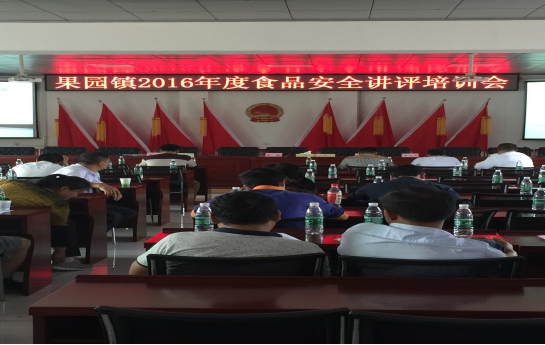 为创建食品安全示范镇,果园镇食安办5月13日下午在镇政府召开果园镇2016年度食品安全讲评培训会,参加会议的领导有路口市场管理监督所谭惟所长、镇主管食品安全的周宾副镇长、镇食安办罗学赛主任、镇卫生院主管食品药品监督李志坚副院长。参加培训的有全镇中小学、幼儿园、全镇各村社区食品安全专干、镇域所有商店、超市、餐饮服务单位及流动厨师和种养专业户等。