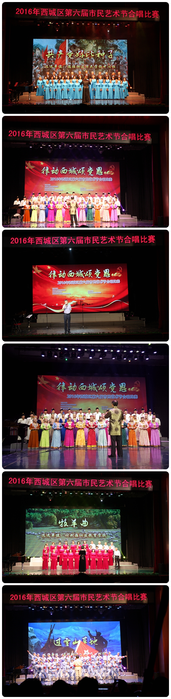 收藏“和平年代也有激荡的风云,看那军旗飞舞的方向…年轻的士兵渴望建立功勋,准备好了吗 士兵兄弟们,当那一天真的来临,放心吧祖国,放心吧亲人,为了胜利我要勇敢前进!”6月3日,伴着激昂向上的旋律,“律动西城颂党恩”2016年西城区第六届市民艺术节合唱比赛在宣武少年宫隆重上演。来自西城区15个街道文明市民学校中心校、12所社区教育学校、261个社区市民学校选送的33个合唱曲目精彩亮相,参赛人数达到1175人。