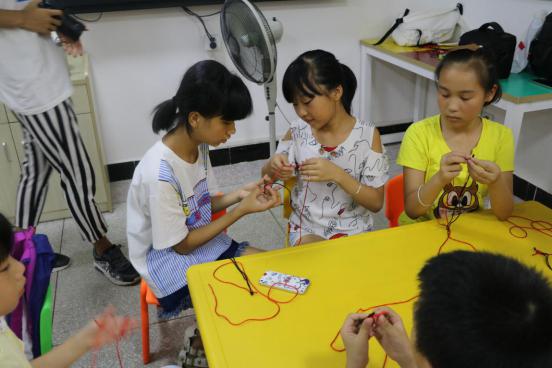 志愿者们利用此次活动向孩子们普及多方面知识,帮助孩子们培养丰富多彩的兴趣爱好和特长,并且与孩子们融为一体,我牵绳、你编织,用寓教于乐的方法教学,与孩子们打成一片。
