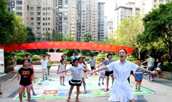 老师们还带领大家跟着英语歌曲跳起了简单的舞蹈,孩子们一边玩乐,一边学习环保和英语知识。