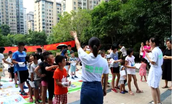 “你们知道什么是干垃圾?什么是湿垃圾吗?”“有人知道两型社会是什么吗”“来自小袋鼠公益的王老师首先跟孩子们和家长进行了环保知识小互动,进而告诉大家什么是干垃圾、湿垃圾,垃圾分类的好处。