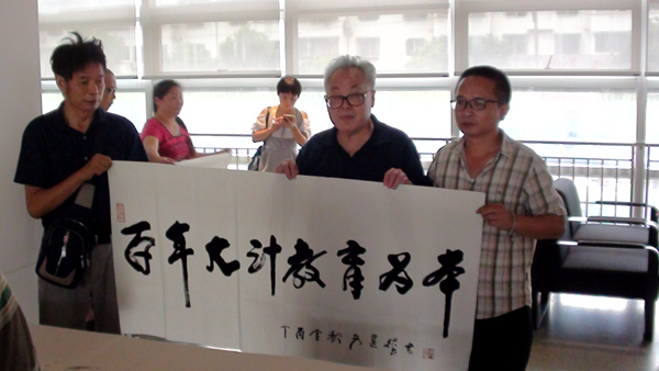 文选德和李贻衡两位老先生欣然为榔梨街道社区学校题写了“百计大计 教育为本”。