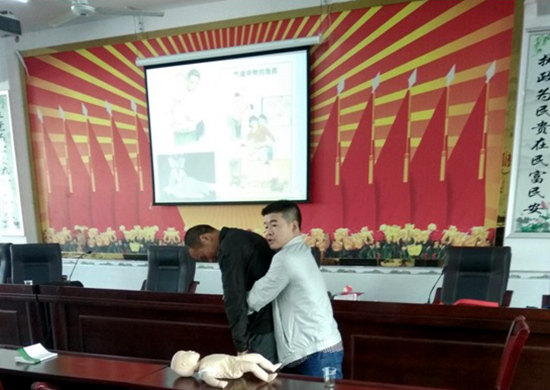 姜处长不仅详细讲解了心肺复苏、突然晕厥之后的急救知识、气道异物的急救知识,而且还对相关救护操作要领进行了现场示范。培训过程中,姜处长更是将生活中常见的烫伤、烧伤、煤气中毒等常见意外处理方法教给村民。尤其重点讲解了在实际救援中,如何抓住最有效的“黄金四分钟”时间,去挽救更多的生命。