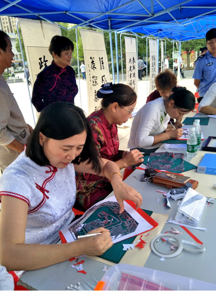 清风古镇 廉洁榔梨活动启动式 ,土岭广场剪纸助廉剪纸表演现场