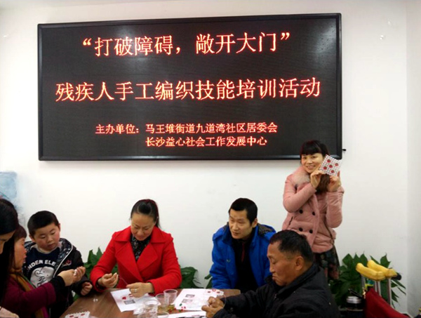 12月5日下午,马王堆街道九道湾社区联合芙蓉区益心社会工作发展中心,精心组织开展了残疾人手工艺品技能培训活动。