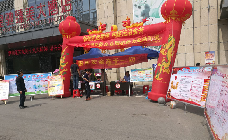 2018年4月20日,金井镇社区学校联合金井镇司法所、综治办、派出所、交警队、行政执法局六家单位,在金井镇社区星驰商业广场前坪,按照“谁执法谁普法”的要求,开展“宪法修正案暨平安创建法治及党的十九大精神宣传、文明镇创建宣传”活动。活动从上午八时开始,至下午三时结束,历时七个小时,共发放《宪法修正案》宣传手册、文明创建、食品安全、禁毒、反对邪教、法律明白人、老乡法典、十九大精神等宣传资料一万余份,解答群众咨询四百余人次。居民群众对这样的宣传活动赞不绝口,表示受益匪浅。许多法律知识得到了解答,许多疑难得到了解决,并希望经常开展此类活动。