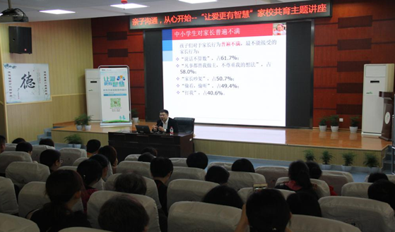 陈博士从当下亲子关系的现状分析开始,谈到孩子对父母的认识及家长对孩子教育中出现的“急功近利、急于求成、急需帮助”等几大误区,帮助他们破解平日里亲子教育间的困惑,提高处理亲子关系的能力。接着谈到要实现亲子间的共“赢”,就必须知道危机、有科学目标,懂得沟通,并保持平常心态,坚持不懈地更多投入与陪伴。