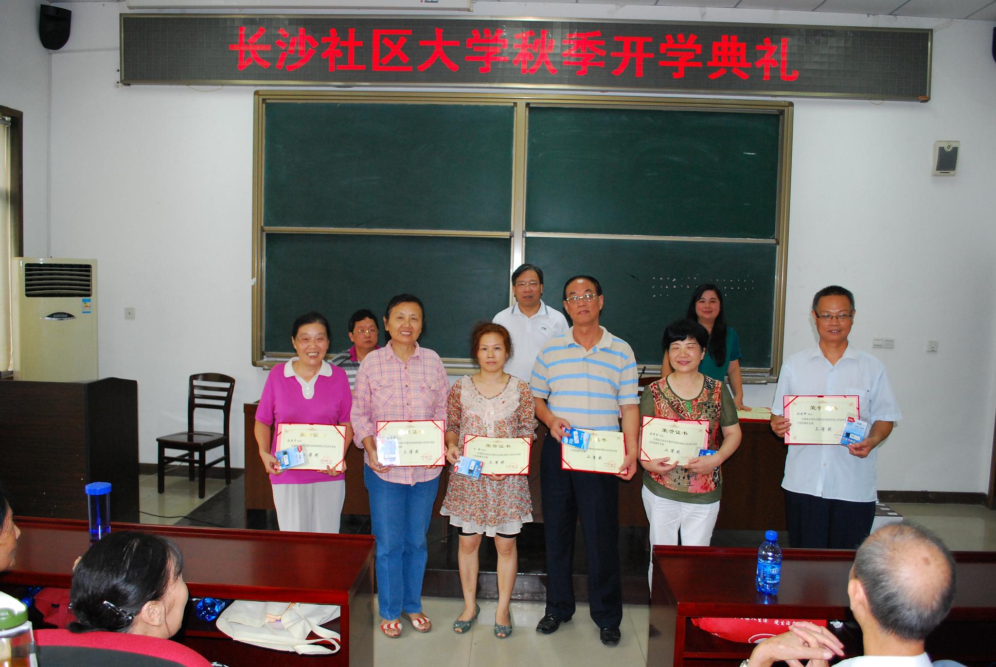 收藏2012年9月12日上午,长沙社区大学举办秋季开学典礼暨社区教育培训成果展示总结表彰会。长沙广播电视大学校长(兼社区大学副校长)张国斌、纪委书记林涛、社教办主任王丽明及培训班学员100余人参加会议。