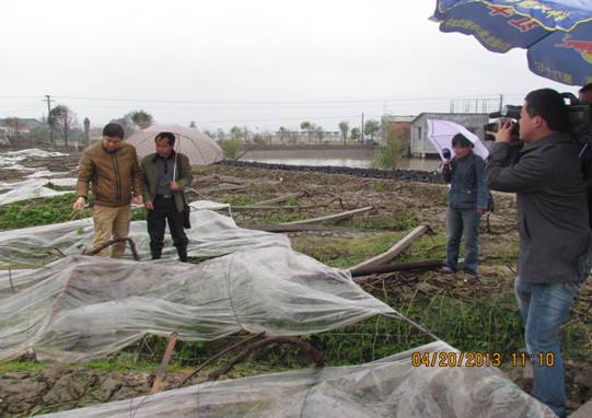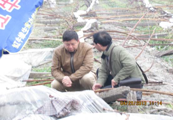 刘教授(右一)在悉心指导并做老板灾后自救的思想工作
