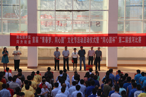 收藏“青春”铸辉煌,“同心”圆梦想。5月24日,来自雨花经开区和同升街道的11支企业代表队和10支群众代表队共计1000余人,参加了首届“青春梦、同心圆”文化节系列活动启动仪式暨“同心圆杯”第二届拔河比赛。雨花经开区党工委书记杜旭辉、区人大副主任杨平、区政府副调研员盘正元、雨花经开区党工委副书记喻新义、同升街道党工委书记张建、同升街道办事处主任尹新国等领导莅临活动现场并为启动仪式致辞。经过艰难的耐力较量,最终来自雨花经开区的比亚迪汽车代表队和来自同升街道的新兴社区筹委会代表队分别获得一等奖。