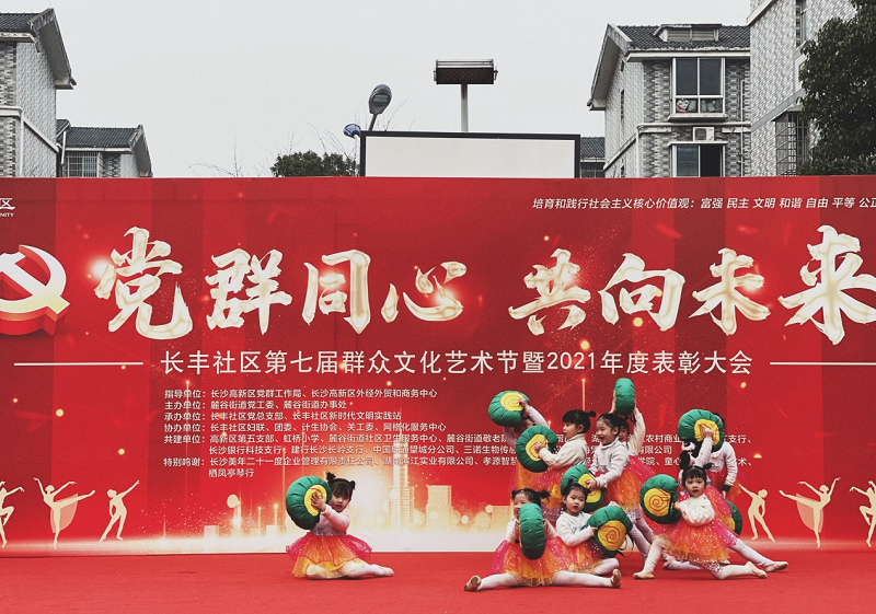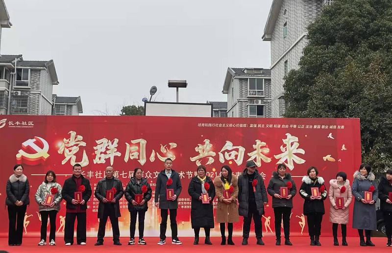 人民网长沙1月2日电 1月1日,以“党群同心,共向未来”为主题,长沙高新区麓谷街道长丰社区举办第七届群众文化艺术节暨2021年度表彰大会活动。